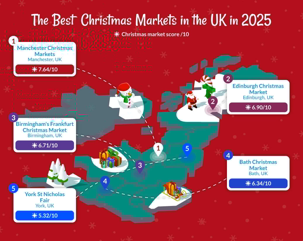 The Manchester Christmas Markets are among the most popular in the UK, with 677,000 annual Google searches. Top search results are for their 2025 opening dates, user reviews, and visit guides to find the best food, showing how excited people are for this year's festivities.