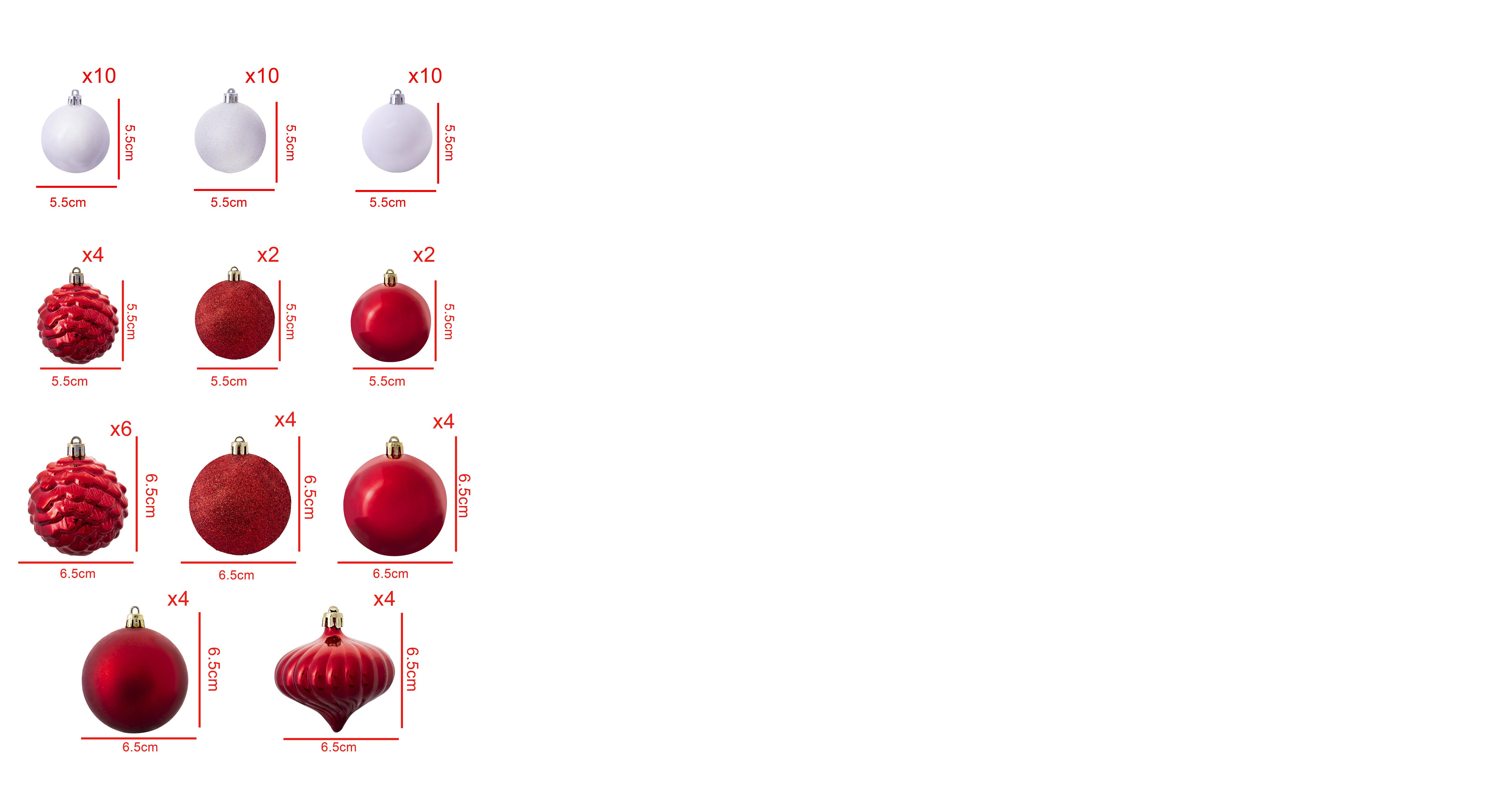 - Number of baubles: 60 pieces