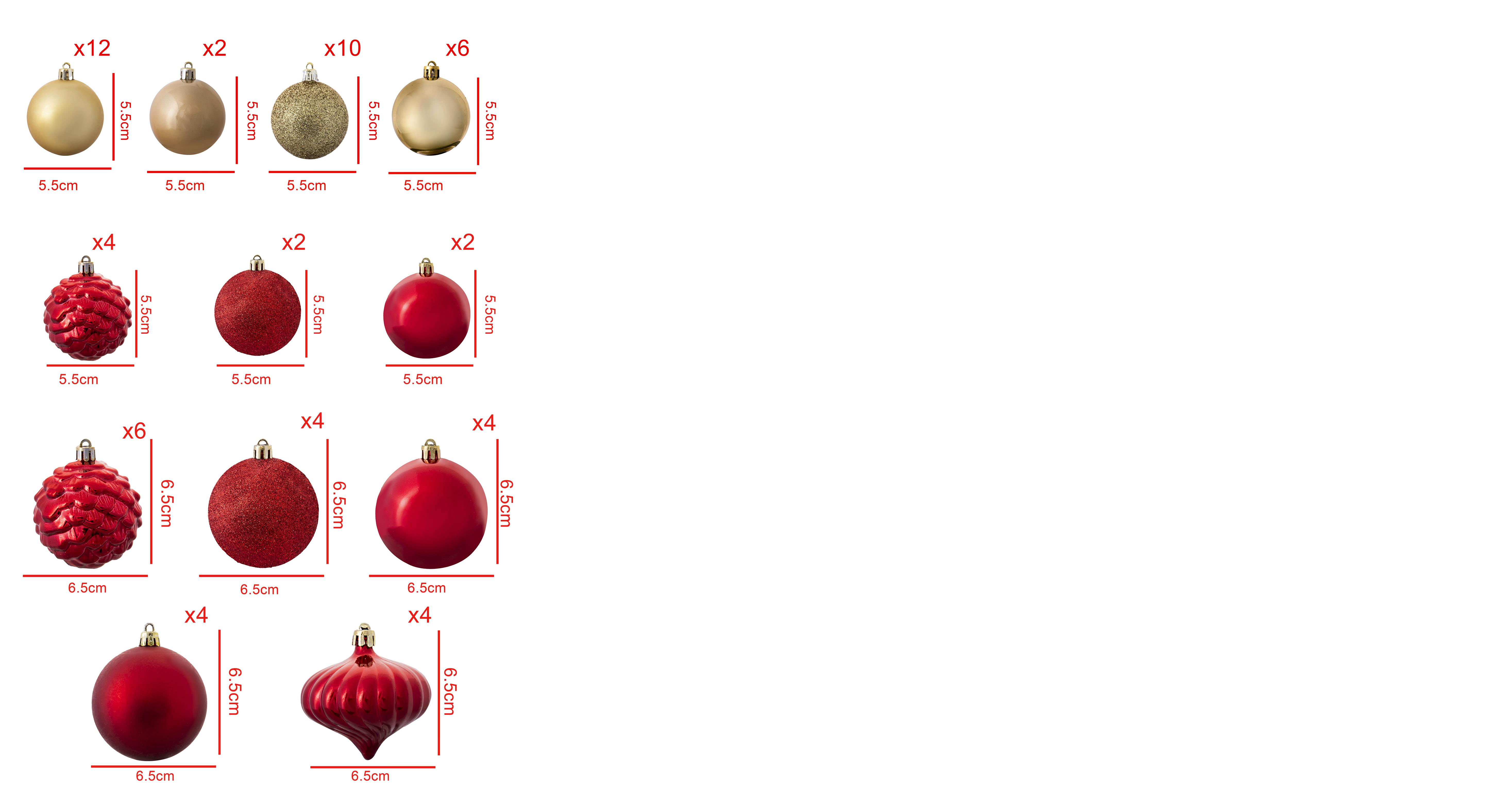 Practical and pretty, these beautiful red and gold baubles are 5.5-6.5cm in size and come pre-packed for you in a variety of styles.